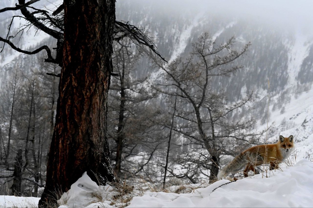 Лисица решила не рисковать: кто их знает, понаставили тут этих камер. Лисички к зиме обзаводится пушистым мехом. Они отращивает густую шубу и нагуливает жирок, который спасает в морозы. Фотоловушки Сайлюгемского нацпарка в долине реки Юнгур.