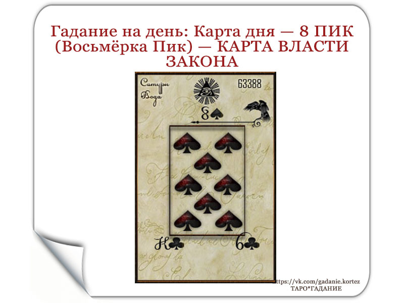 Гадание на день: Карта дня — 8 ПИК (Восьмёрка Пик) — КАРТА ВЛАСТИ ЗАКОНА