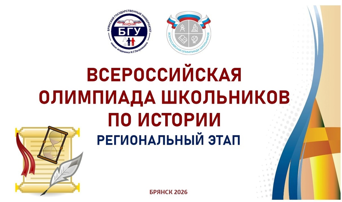 20–21 января 2026 года Брянский государственный университет стал интеллектуальной площадкой для одного из самых важных событий в региональной образовательной жизни – регионального этапа Всероссийской олимпиады школьников по истории. За право показать свои знания и пройти в финал соревнуются более 60 лучших учащихся 9–11 классов из школ Брянска и области, уже доказавших своё право на эту ступень победами на муниципальном уровне. Церемония открытия создала серьезный и мотивирующий настрой для последующей работы. К юным историкам с напутственными словами обратились почётные гости: А.И. Лазобко, заместитель директора департамента образования и науки Брянской области; О.В. Карбанович заместитель проректора по образовательной деятельности - начальник учебно-методического управления университета, кандидат педагогических наук, доцент; С.И. Михальченко, декан факультета истории и международных отношений, доктор исторических наук, профессор; В.Ф. Блохин, заведующий кафедрой отечественной истории