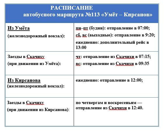 С 1 февраля вступит в силу новый автобусный маршрут №113, который свяжет Умёт и Кирсанов