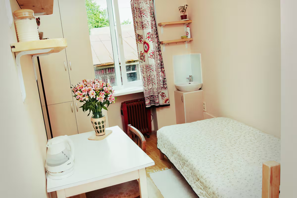 Привет, мои дорогие. Сегодня утром мне написала подписчица Алина, которая искала однушку для переезда в Москву. И ей предложили вот этот вариант за 50 тысяч рублей в месяц. ПЯТЬДЕСЯТ ТЫСЯЧ! Я открыла фото и онемела. Это не квартира — это переоборудованная коморка с умывальником прямо в спальне, санузлом цвета ржавчины и БЕЗ КУХНИ ВООБЩЕ. Неужели в 2026 году людям серьёзно предлагают жить в клетке площадью 10 квадратов, где помыть руки можно только рядом с кроватью, а поесть — исключительно лапшой быстрого приготовления? Если у вас есть похожие истории — пишите в комментариях, потому что молчать об этом беспределе нельзя. Спальня-умывальня-столовая — когда всё в одной комнате, даже раковина Площадь — метров восемь максимум. Узкая комната-пенал, где умещается всё: и спальня, и рабочее место, и обеденная зона, и даже УМЫВАЛЬНИК! Да, вы не ослышались. В углу у окна стоит самая настоящая раковина на бежевой тумбочке. Видимо, хозяин решил, что зачем вам ходить в санузел, когда можно умыватьс