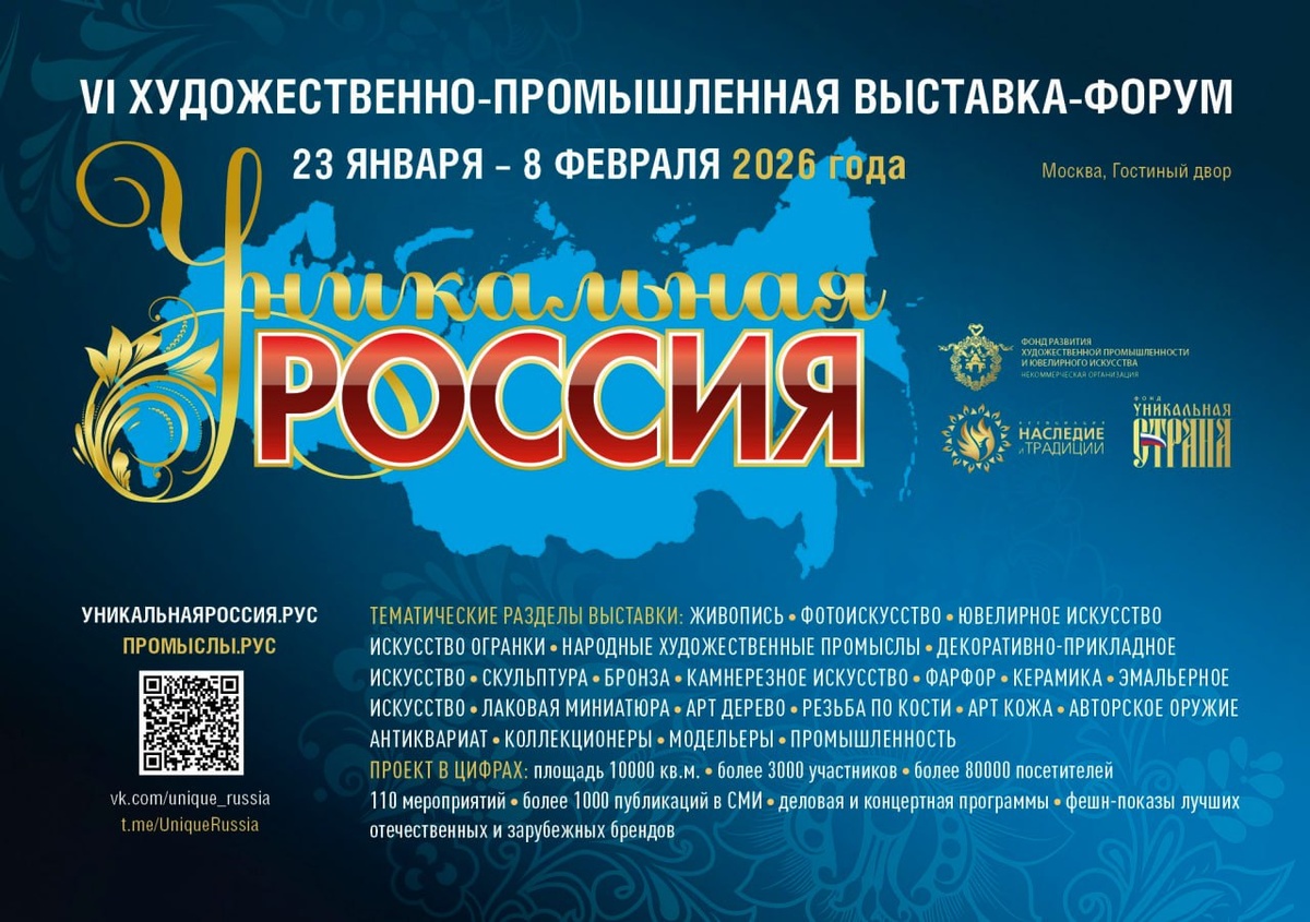 Культура: С 23 января по 8 февраля в московском Гостином дворе пройдет 6-я художественно-промышленная выставка-форум «Уникальная Россия