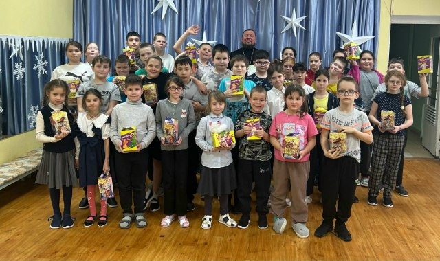 храма с. Новоандреевка протоиерей Димитрий Кудряков. Отец Димитрий рассказал детям о празднике и спел тропарь праздника, а так же показал икону Крещения Сына Божия. Батюшка передал освящённую Богоявленской воду, раздал всем детям подарки и пожелал всем помощи Божией и здоровья, которые да укрепит дар Божий - Святая Агиасма! ----- Сообщает: Свято-Ильинский храм села Новоандреевка,МГО. 🫛Миасс Православный