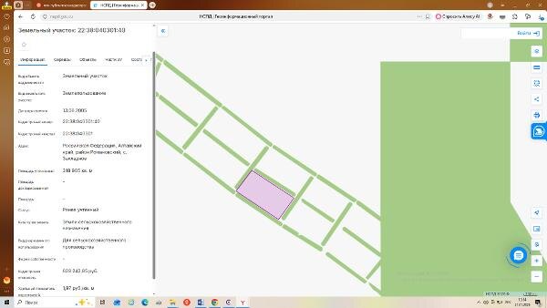 ориентира, расположенного за пределами участка. Ориентир с. Закладное. Участок находится примерно в 9,8 км, по направлению на юг от ориентира. Почтовый адрес ориентира: Российская Федерация, Алтайский край, район Романовский, с. Закладное. Канал: Госземля Алтайский край Область: - Район: - Населенный пункт: - Локация: Смотреть на карте ВРИ: Сельскохозяйственное использование Кадастровый номер: 22:38:040301:40 Кадастровая стоимость: - Вид сделки: Аренда Площадь: 318905 м² Начальная цена: 18133.00 руб. Дата завершения: 11.02.2026 Подробнее: ГИС ТОРГИ #госземля #земляотгосударства #земля #земельныйучасток #земельныеторги #торги #аукцион #арендаземли #аренда #алтайскийкрай