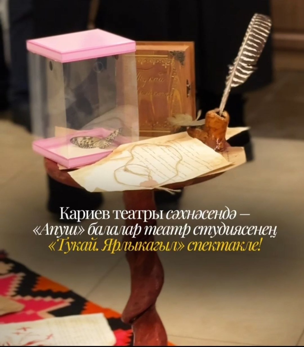 Прощение". В ней приняли участие 32 воспитанника детской театральной студии «Апуш» ДЦ "Московский". Одним из них является Аскар-мой выпускник❤️ Спектакль основан на автобиографических записях Габдуллы Тукая "Оставшееся в памяти". Режиссер спектакля – актер и режиссер театра Габдуллы Кариева Булат Гатауллин. Мне посчастливилось принять участие в этом масштабном мероприятии 🙏 Мной была создана деревянная книга, написаны 📜 стихотворения Габдуллы Тукая тушью и пером. Все материалы располагаются в фойе театра🎭 Спасибо большое за возможность быть частью культурного наследия 🙏 Огромное спасибо за доверие 🙏 Этим и были заняты мои мысли на прошлой неделе🤗