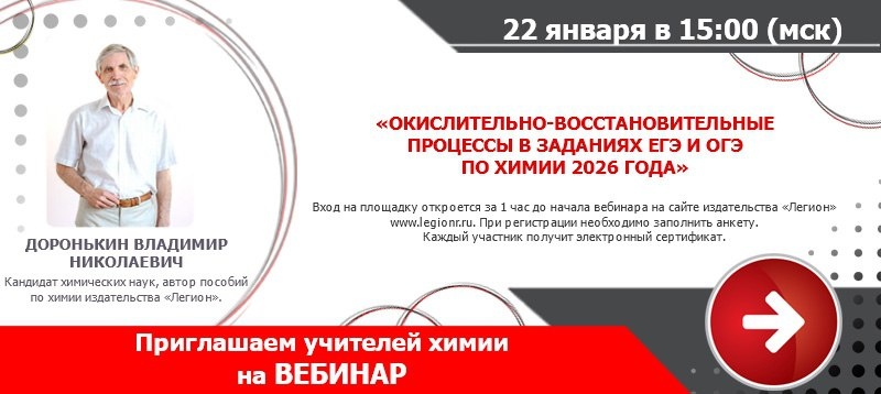 " Дата: 22.01.2026 (Чт) Время: 15:00 Лектор Доронькин Владимир Николаевич - кандидат химических наук, автор пособий по химии издательства «Легион». Участие бесплатное. Выдается сертификат. Требуется регистрация на сайте издательства