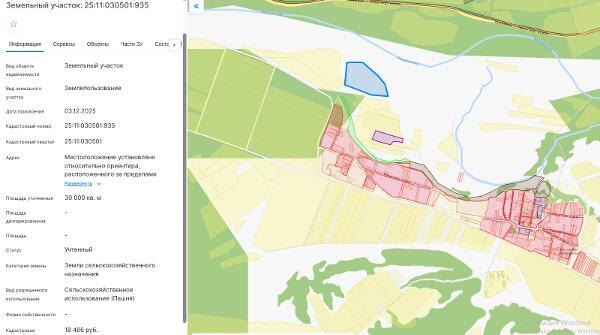 Название: Земельный участок с кадастровым номером 25:11:030501:935 площадь 30000 по адресу Приморский край, Октябрьский муниципальный округ