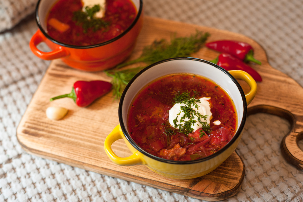 Супы, как блюдо, являются неотъемлемой частью нашей национальной кулинарной культуры. И, если честно, я не понимаю тех, кто не любит и не ест супы! И спорить об их пользе и бесполезности не буду! Мы- едим, ведь их же огромное множество на любой вкус : и горячие, и холодные, и постные, и фруктовые. Но один из самых любимых это конечно борщ. Нет не так – БОРЩ!!! Огненный, наваристый, да с чесноком, да с ржаным хлебушком ….Песня!!! Вариантов приготовления борща столько же, сколько и хозяек его готовящих. Я готовила по разному: с фасолью, с томатами, с салом, свекольной боевой и т.д. Конечно мне сейчас расскажут, что у меня «неправильный» борщ, однако вся семья безоговорочно признает только этот!!!😁😁😁😁 *мясо ( желательно с «мозговой» косточкой, но можно и без нее) 700 гр * картофель 2 крупных( или 3 средних) шт. * свекла 1 крупная шт * капуста ( извините, здесь на глаз😜) * морковь 1 средняя шт * лук 1 средняя шт. * Соль, перец горошек, перец острый ( смотря какой сорт от 1 до 3 шт, н