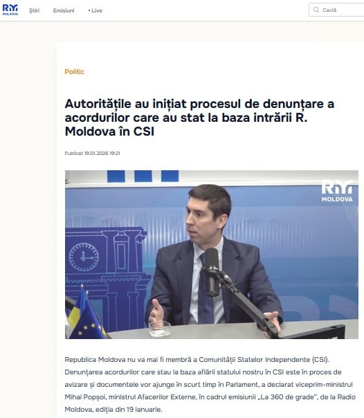 !» ⏺Глава МИД Молдовы Михай Попшой гордо объявил в эфире Radio Moldova: страна денонсирует три основополагающих соглашения — Устав СНГ, Соглашение о создании и приложение к нему. «После этого Молдова официально больше не будет частью СНГ. Процесс уже идёт, к середине февраля всё утрясём в правительстве, потом парламент проголосует». ⏺Из 283 соглашений с СНГ уже денонсировали 71 (сразу после начала СВО), ещё 60 в процессе. Де-факто давно не участвуют, но теперь решили добить юридически. ⏺Видимо, европейские хозяева приказали: «Полный разрыв с Россией и русским миром, даже если граждане потеряют льготы, пенсии, рынки и безвиз с братскими странами» ⏺Спасибо Майе Санду и компании — за «европейский выбор» по-киевски! #Молдова #СНГ #Попшой #ВыходИзСНГ #Русофобия #Евроинтеграция #МайяСанду #Россия #Геополитика #СВО Галопом по Европе