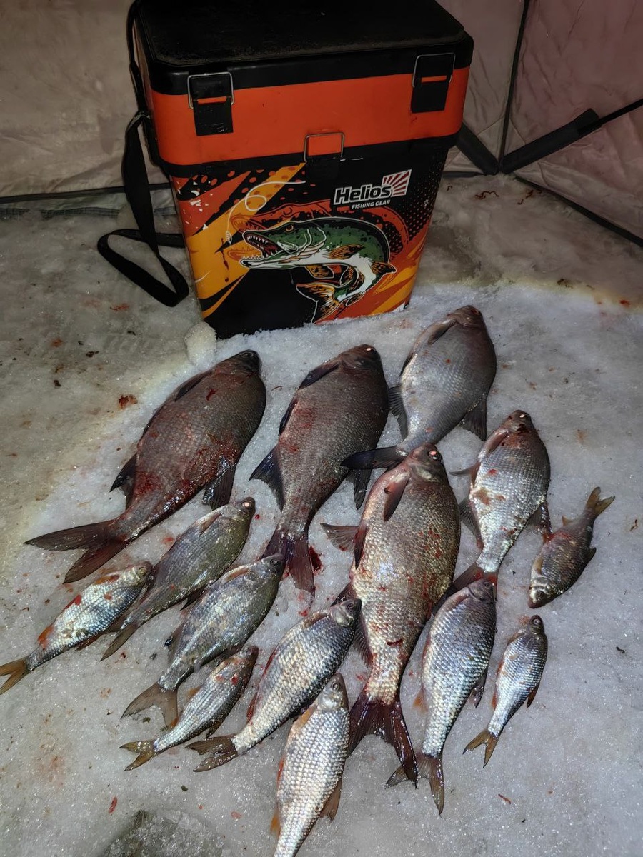 📍 СПб, Балтийский бульвар, "Казакова" 🌊 Финский залив 🎣 Мормышка 🐠 Лещ, Плотва Чуть половил в ночь. Прошёлся по берегу — в эхолоте в каждой лунке изобилие рыбы. Лунки, где был сыпучий корм, — просто безжизненные. В итоге сел, закормил мотылём. Встала плотная стая леща, которая то и дело задевала леску, но не клевала. До рассвета было очень долго, поэтому вариант ждать утреннюю раздачу не рассматривал.