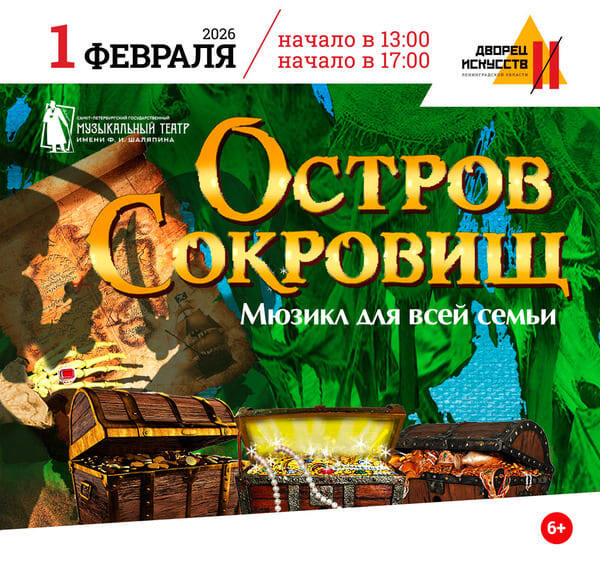 Если вы ищете, куда сходить в СПб недорого и с пользой для всей семьи, обратите внимание на мюзикл «Остров сокровищ» в Дворце искусств Ленинградской области (м. Нарвская). 1 февраля в 13:00 и 17:00 юный Джим Хокинс приглашает зрителей в захватывающее путешествие — где вместо гаджетов — паруса, вместо скролла — сокровища, а вместо одиночества — верные друзья и отважные решения. Это не просто спектакль: здесь оживают декорации, звучат лихие песни под руководством маэстро Фабио Мастранджело, а хореография и фехтовальные сцены делают каждую минуту зрелищной. Но главное — история, которая мягко напоминает детям (и взрослым!), что настоящий клад — это честность, смелость и любовь. Идеально для тех, кто хочет провести выходные с пользой, в безопасности и без экрана. Билеты доступны, а эмоции — на весь год. Сохраните эту идею или узнайте подробности по ссылке — пока билеты ещё есть!