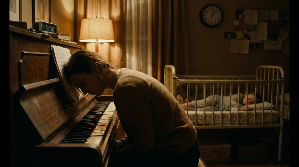Я открыла глаза и уставилась в потолок. За стеной – приглушённые ноты, будто кто-то осторожно касается клавиш. Не мелодия даже – обрывки. Начало фразы, пауза, снова начало.