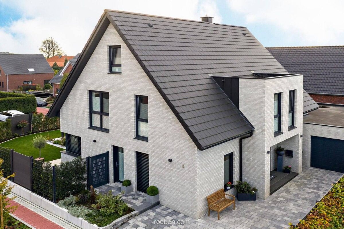 Керамическая черепица фирмы Roben (коллекция BERGAMO) в оттенке Antrazit (антрацитовый, серый