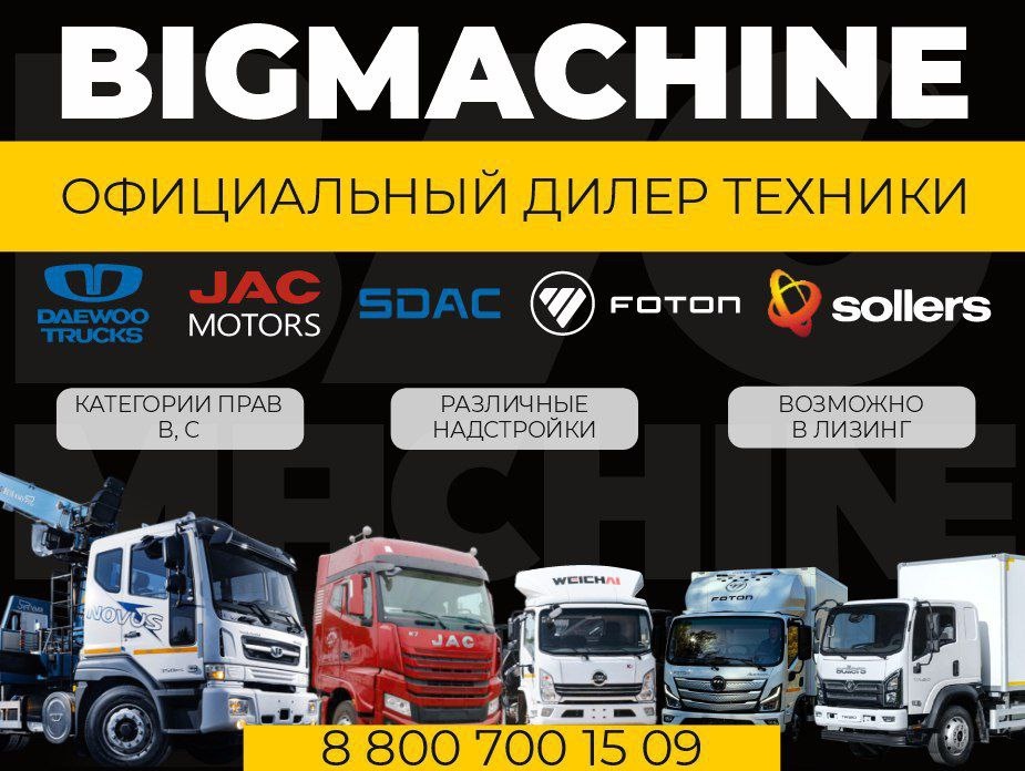 : ▪Jac ▪Sdac ▪Daewoo ▪Foton ▪Sollers Вам нужна техника для работ, но не можете определиться с выбором? Наши опытные менеджеры обязательно подберут для вас наилучший вариант! - Нужен авто с категорией прав В? Легко! - Индивидуальная застройка? Сделаем! - Интересует приобретение в лизинг? Работаем! Звоните, чтобы получить лучшее предложение! 📞 88007001509