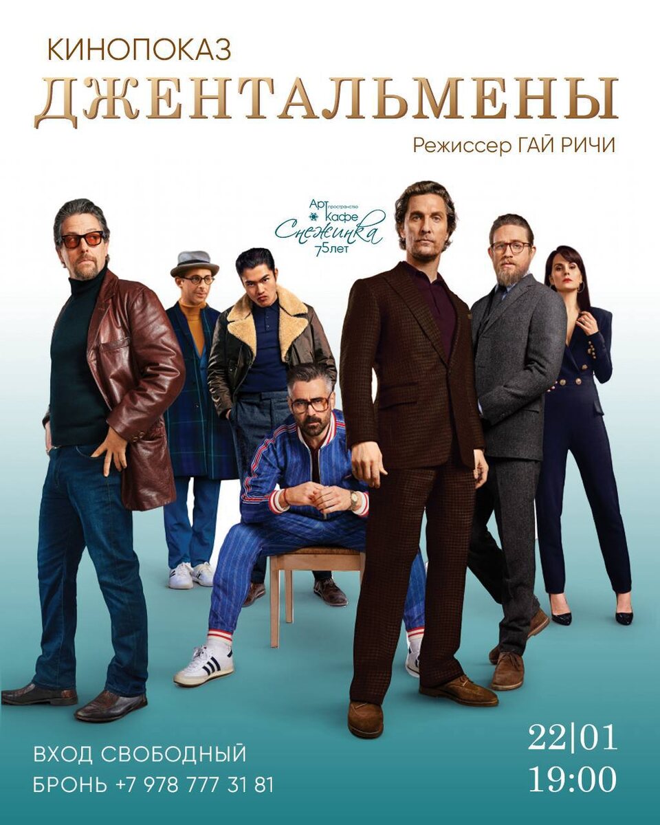 » Стильная криминальная комедия Гая Ричи. Ирония, британский юмор, неожиданные повороты сюжета и харизматичные герои — фильм, который смотрится на одном дыхании, а так же вкусно по ужинаем 👉 Когда? 22 января в 19:00 👉 Где? арт-кафе «Снежинка» 👉 Бронь: +7(978)-777-31-81 ✨Давай сходим, Севастополь | Читайте и смотрите нас в МАХ