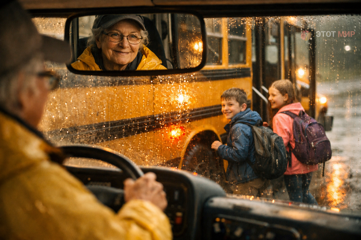 Утро у Салли не задалось. Даже детские улыбки не помогали. Она нажала на тормоз и глубоко вдохнула. И в этот момент увидела их — двоих малышей, идущих под дождём. Она и не думала, что в таком сером дне может быть столько света.