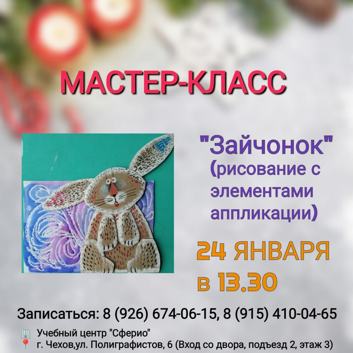 ✨ 🎨 Приглашаем юных творцов на интересный мастер-класс! 🖼️ Хотите создать своего неповторимого зайчика? 🐰 Тогда этот мастер-класс точно для вас! На занятии мы: - создадим неповторимый фон с зимними узорами с помощью свечи, акварели и волшебной пыльцы🪄🎨 - вырежем из картона детали зайчика и раскрасим их✂️🐇 - Создадим уникальную композицию 🎯 📆 24.01.2026 🕛 13:30 🏢 Учебный центр "Сферио" 📍 г. Чехов,ул. Полиграфистов, 6 (Вход со двора, подъезд 2, этаж 3) 🔗 Записаться: https://t.me/UZentrSferio2024 Наши соцсети 📲⬇️ ➡️ ВК https://vk.com/sferio_kids ➡️ ТГ https://dzen.ru/id/672e115c65592e5989376c34 ➡️ Продленка https://vk.com/prodlenkachehov ➡️ Школа https://vk.com/sferio_school 🎁Забрать подарок:🎁 https://t.me/bot_sferio_bot 💥 Подпишись и получи подарок 💥 Наша What'sApp группа