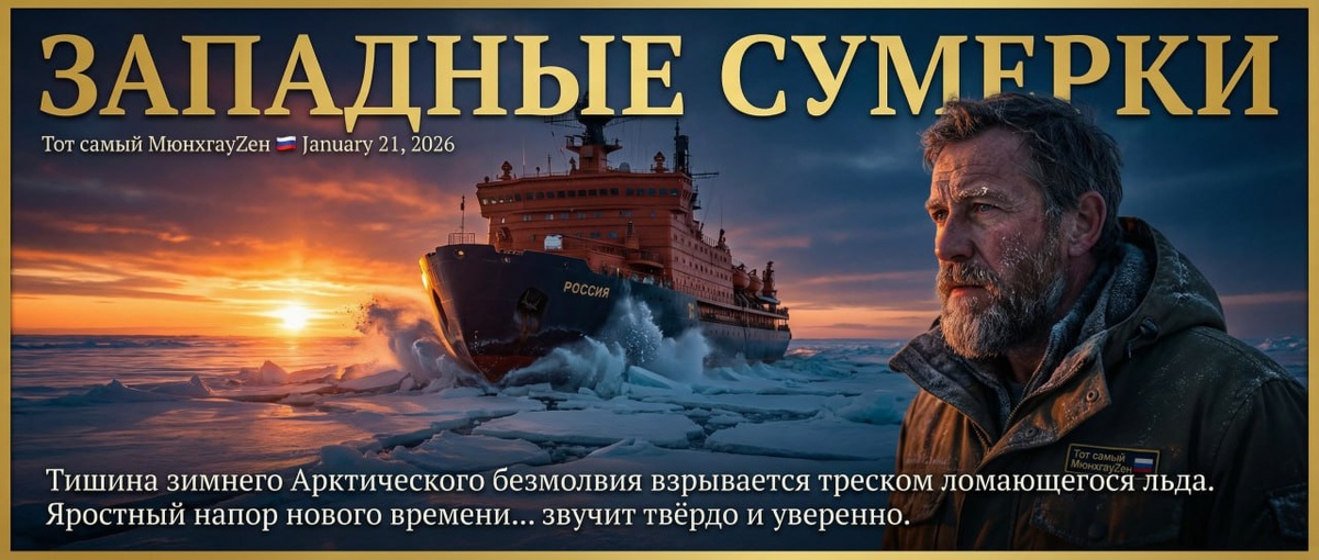 Часть 1️⃣/2 Тишина зимнего Арктического безмолвия взрывается треском ломающегося льда. Яростный напор нового времени, подобно мощному ледоколу, крошит некогда незыблемые толщи старого миропорядка. Январь 2026 года становится жестоким зеркалом, в котором Запад видит своё отражение: не всесильного повелителя, а уставшего, раздражённого гегемона, который в отчаянии хватается за последние инструменты власти — грубую силу, финансовое удушение и территориальные захваты. Война на Украине, ультиматумы по Гренландии, санкционное одичание — всё это не признаки силы, а симптомы глубокого системного кризиса, последней агонии модели мира, где одна страна назначала правила для всех. И пока этот мир с треском рушится, на его обломках уже проступают контуры будущего, где голос России звучит твёрдо и уверенно. 🔹 Украина: театр абсурда в Давосе и крах «коалиции желающих» Картина, разворачивающаяся вокруг так называемого Всемирного экономического форума в Давосе, могла бы быть смешной, если бы не была