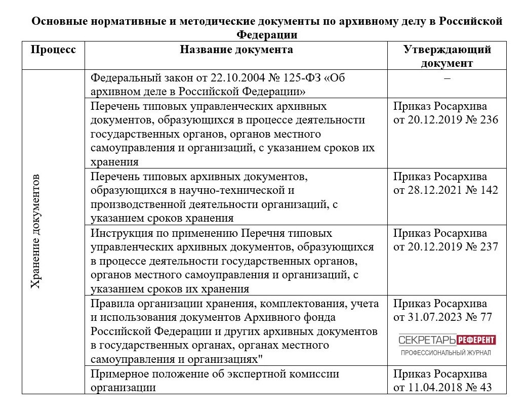 Шпаргалка 2 Основные нормативные и методические документы по архивному делу в Российской Федерации В Шпаргалке 2 приведены документы, актуальные для организации хранения документов.