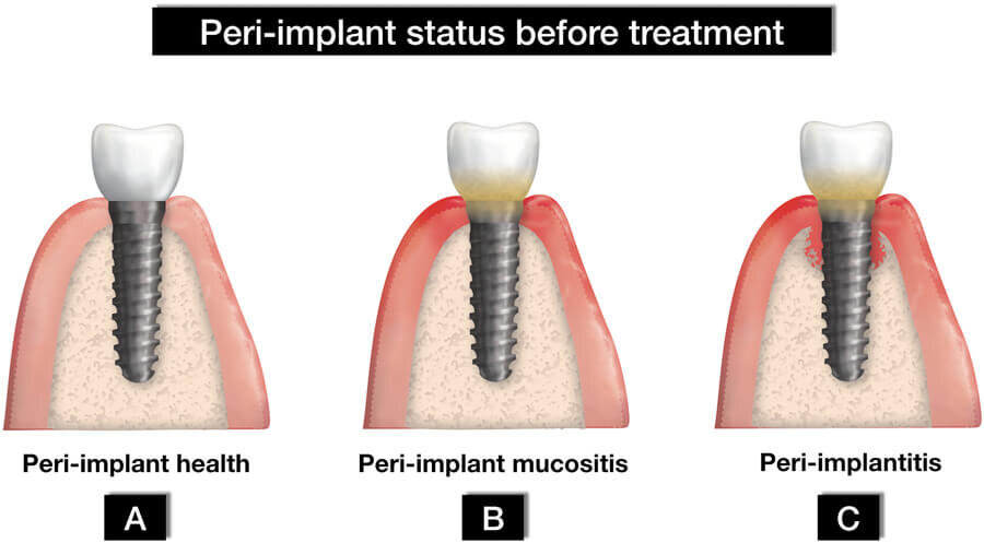 Периимплантит — это воспаление костной ткани вокруг имплантата с её последующей утратой и потерей имплантата.