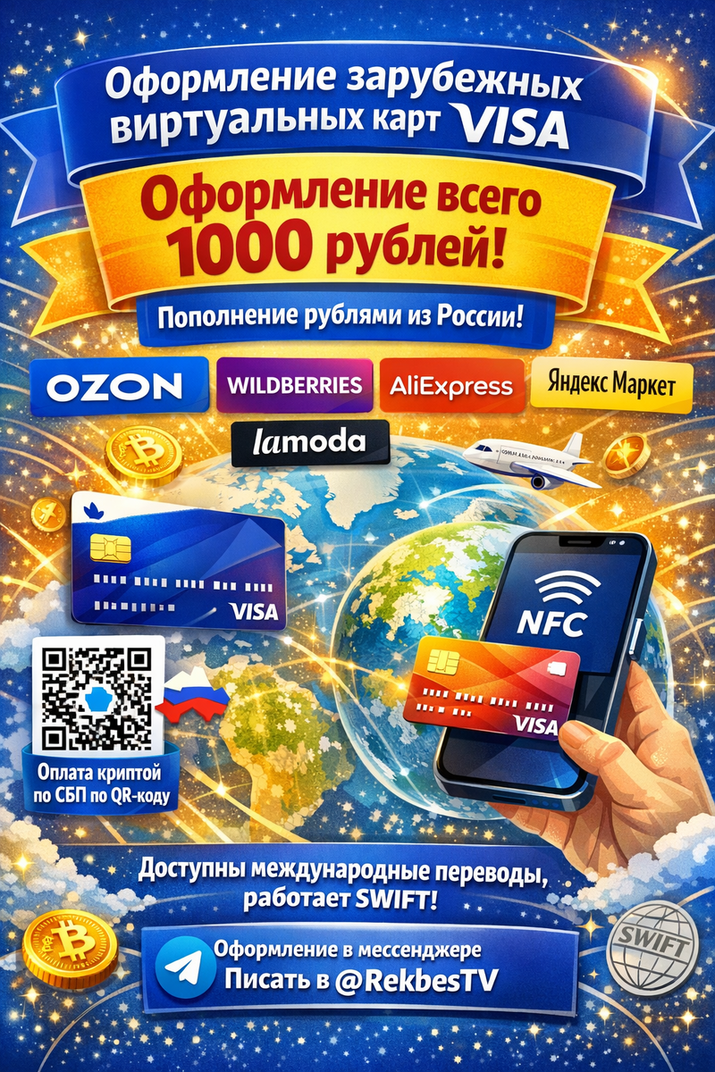 В условиях современных ограничений многие жители России ищут надёжные способы совершать международные платежи, оплачивать подписки и покупки за рубежом, не отказываясь от удобства внутри страны. Одно из самых эффективных решений — виртуальная карта, которая сочетает глобальную функциональность с простотой использования. Эта зарубежная карта Visa позволяет пополнять баланс прямо из России через СБП, а также оплачивать покупки бесконтактно по NFC. Теперь не нужно беспокоиться о блокировках или сложных обменниках — всё работает быстро и безопасно. Оформление занимает всего несколько минут: вы получаете доступ к онлайн-банку, где можно создать несколько виртуальных карт Visa. Условия прозрачны и выгодны: При закрытии остаток возвращается на основной кошелёк. Эта виртуальная Visa-карта открывает настоящую финансовую независимость: от повседневных покупок до крупных международных операций. Забудьте об ограничениях — выбирайте удобство и безопасность уже сегодня.