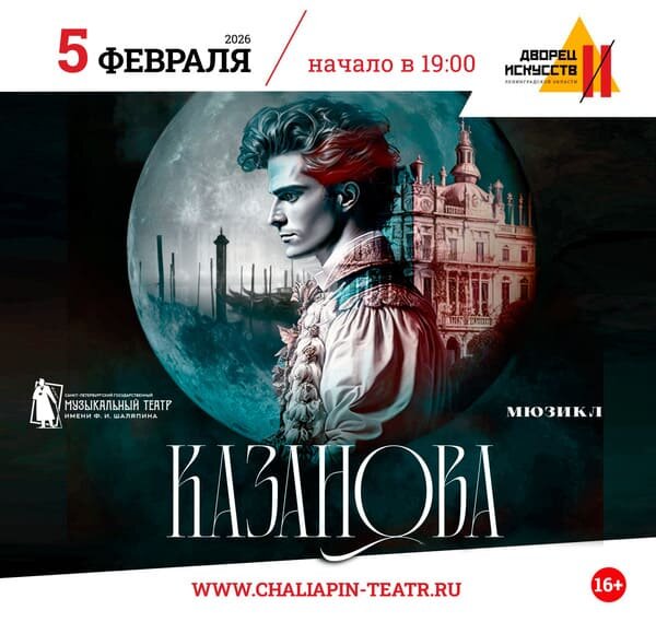 После недель серых встреч и бесконечных звонков хочется не просто отвлечься — а почувствовать. Погрузиться в мир, где каждая нота — признание, каждый костюм — поэма, а маска помогает увидеть правду. Именно такое пространство ждёт вас 5 февраля в Дворце искусств Ленинградской области: мюзикл «Казанова» от театра им. Шаляпина — не про соблазнителя, а про однолюба, чья душа впервые встретила свет. Это не просто спектакль — это карнавал о настоящей любви, созданный по мотивам пьесы Марины Цветаевой. Венеция XVIII века, лунный свет на воде, голоса, будто сотканные из шёпота и страсти, и костюмы, достойные музея… Здесь всё — метафора, и всё — искренне. Режиссёр Илья Архипов превращает сцену в зеркальный лабиринт, где зритель не наблюдает за историей — он её переживает. И да, культурный отдых в Петербурге может быть доступным. Если вы ищете, куда сходить в СПб дешево, но с душой — этот вечер станет той самой находкой. Билеты начинаются от скромной суммы, а впечатления останутся надолго: как