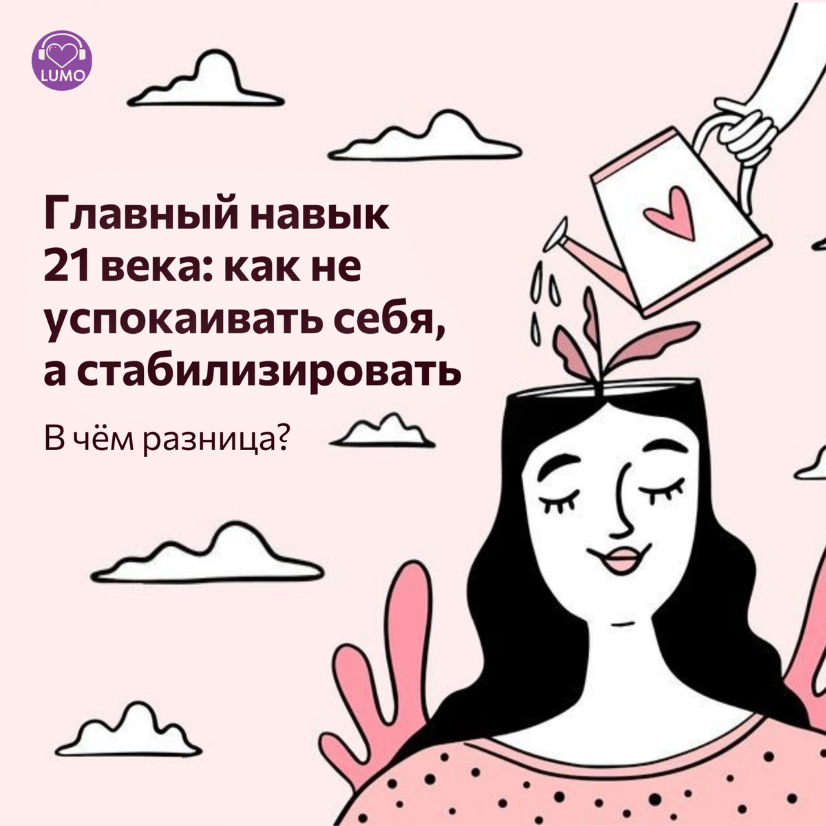 В моменты тревоги мы часто говорим себе: «Успокойся». Но что, если эта команда — часть проблемы? «Успокоить» себя значит заглушить или подавить волнение. А «стабилизировать» это вернуть себе почву под ногами и контакт с реальностью, чтобы наблюдать эмоции из точки внутренней безопасности. 🫣Успокоение — борьба с симптомом «Не чувствуй этого» 😌Стабилизация — возвращение к опоре «Я здесь, я в безопасности, это чувство пройдёт» Когда собственных сил для стабилизации недостаточно, необходим внешний, стабильный проводник. Именно здесь вступает в силу Метод терапевтического аудиоприсутствия в LUMO. Это научно-обоснованный формат сопровождения, который: 🔥 Помогает нервной системе закрепиться в состоянии спокойствия. 🔥 Способствует устойчивости состояния покоя. 🔥 Не дает утонуть в негативных состояниях. Это метод для тех, кто ищет не временное отвлечение, а системный инструмент для восстановления душевного равновесия. Он учит не бороться с бурей чувств, а обретать устойчивость в её эпицен
