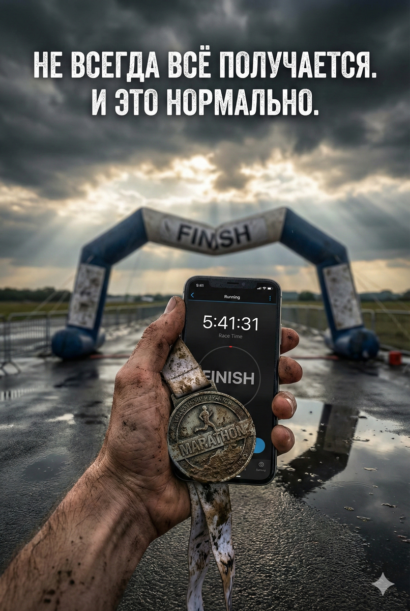 Не всегда всё получается. И это нормально Про старты и результаты захотел написать Один из самых непростых моментов для тренера и для любителя, когда старт провален. У каждого есть в анамнезе тяжёлые дни, провальные гонки, моменты, когда хочется всё бросить. Но именно эти моменты делают нас сильнее. Они отличают явь от мечты и дают нам точку опоры. Я часто вспоминаю своего любимого Киплинга: "И будешь тверд в удаче и в несчастье, Которым, в сущности, цена одна,"... Успешный успех, про который мы читаем построен ведь из обломков неудач. Нет у нас с вами другого строительного материала. Можно в интернете найти много вдохновляющих цитат про то сколько неудач было у известных личностей, но мне кажется интереснее почитать про тех кто ближе к нам. Собрал для вас несколько историй наших учеников. Я писал когда-то про них и мне кажется, эти истории не менее вдохновляющие, чем истории известных людей. 1. Владимир в прошлом году на марафоне в Казани финишировал за 5:41:31. Первые 40 км он пробеж