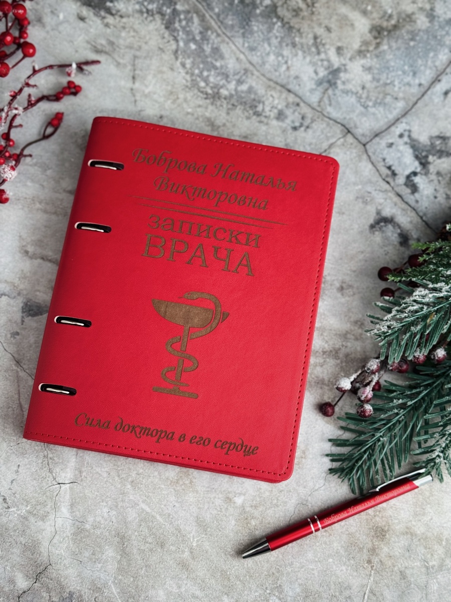Блокнот на кольцах на заказ для врача с гравировкой имени и ручка🔥