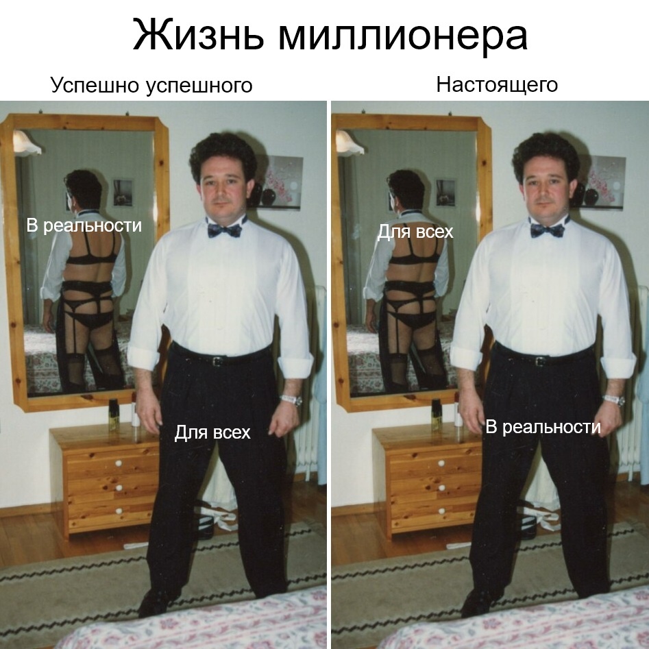 Ну и конечно, рядом с вами рано или поздно окажутся работники банков с уникальными инвестиционными предложениями ниже инфляции даже по теоретическим расчетам. И странные знакомые знакомых, которым далеко за 40, с разными странными мегапроектами, которые они вынашивают в голове последние 15 лет. При том что из активов у этих перцев - пару невнятных должностей в найме лет 7 назад в компаниях которые закрылись или в огромных корпорациях, 2 развода, алименты и некробмв с заедающей дверью. И невероятное желание долго обсуждать светлое будущее в ресторане, где ты, на правах старшего товарища, будешь оплачивать счет с большим количеством пафосного алкоголя и коктейлями помятым девкам под 40 за соседним столиком.