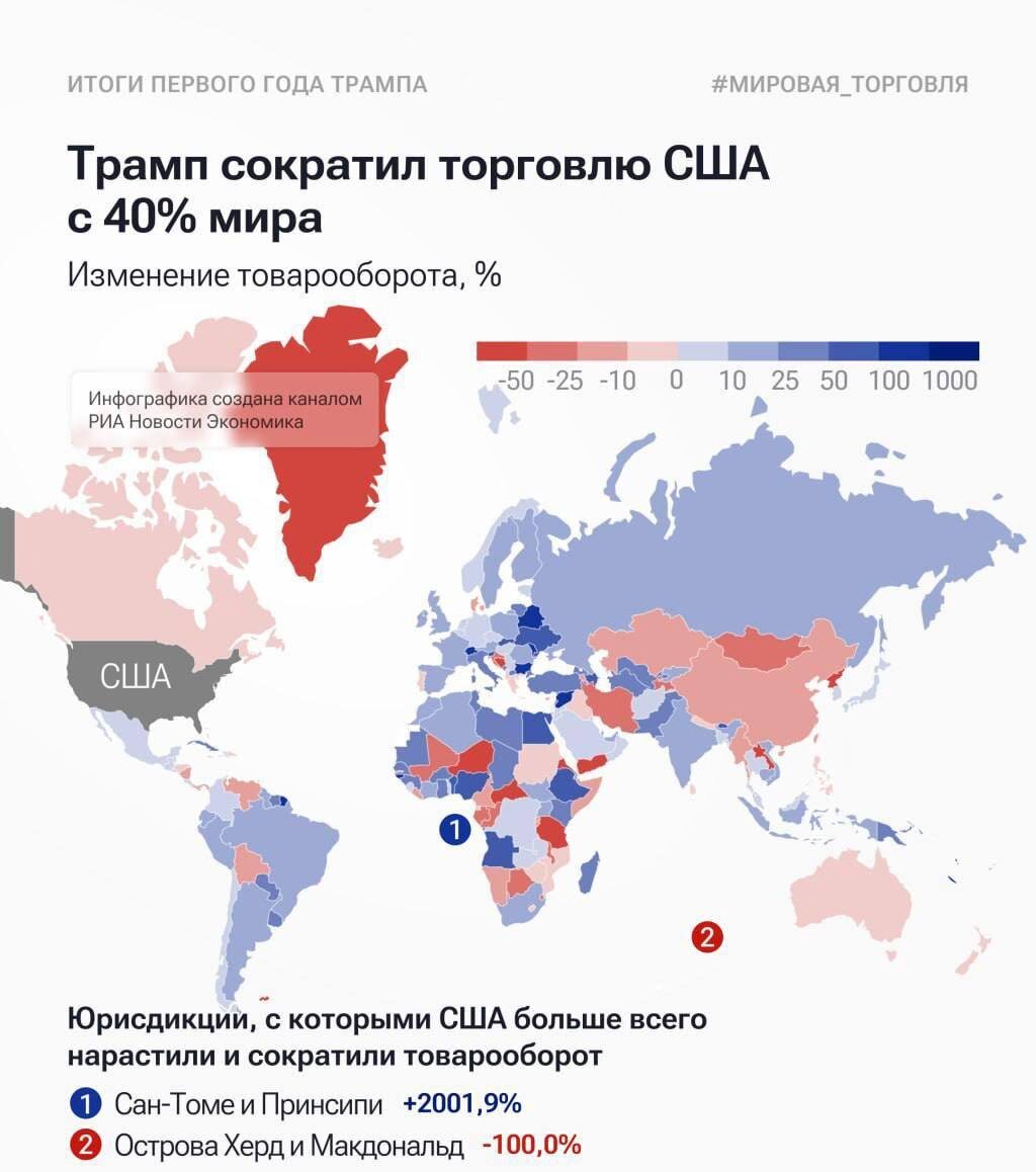🇺🇸 США сократили торговлю с почти 40% стран мира после прихода к власти Дональда Трампа.