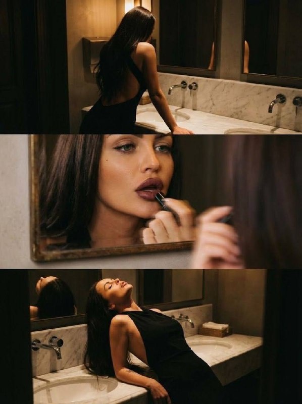 👉 Создать в 1 клик Модель: Banana 🍌 Промт: Кинематографичный триптих в зеркальном туалете дорогого ресторана, вечер, интимный свет, отражения, ощущение пойманного момента. Единый образ и настроение, лёгкое зерно и motion blur, ультрареализм без глянца. Верх: девушка спиной опирается на раковину, лицо в тени, освещена спина; черное платье с открытой спиной, длинные гладкие волосы,драматичный силуэт. Центр: экстремальный крупный план лица в зеркале — поправляет помаду, живое движение, частичный фокус. Низ: голова запрокинута, глаза закрыты, расслабленная поза у раковины, тот же образ. Свет мягкий, глубокие тени, насыщенные сдержанные цвета. Черты лица сохранить 1:1 (глаза, нос, губы, овал). 💬 Создаем в боте: https://t.me/gptcyber_bot 💬 Чат подписчиков для вопросов https://t.me/ChatGptCyberbot