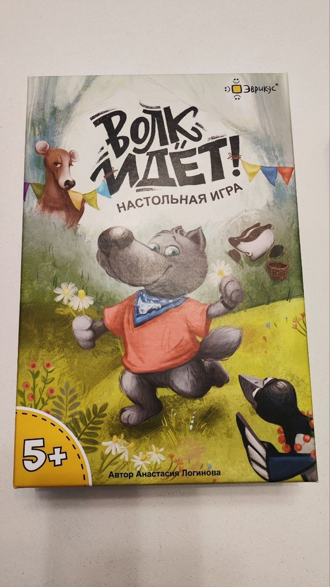 Волк идет от Эврикус 5+ 2-4 игрока 30 минут Цель игры. Подготовить праздник для Волка-именниника. Игра кооперативная. Задача игроков перемещать фигурки животных по лесу, открывать жетоны, чтобы найти подарки и угощения. Волк будет делать каждый раз один шаг в сторону домика во время хода игрока. Игра будет закончена, когда волк дойдет до домика. Ход игры. В начале игры собираем поле на столе, и разбираем фигурки животных, волк встает на клетку старта. У нас есть 25 ходов, чтобы приготовить праздник) У каждого персонажа своя карточка, на которой указано сколько шагов делает герой, какие препятствия его могут задержать, и количество подарков, которые он сможет унести. В свой ход игрок: 1⃣перемещает фигурку героя 2⃣совершает действия с жетонами леса 3⃣перемещает фигурку волка В игре есть карточки действий, используются, когда герой не может обойти непреодолимое препятствие. Задания офигенные! Очень веселые, живые и смешные. Мы играем втроем, иногда вчетвером. У Мирона отлично полу