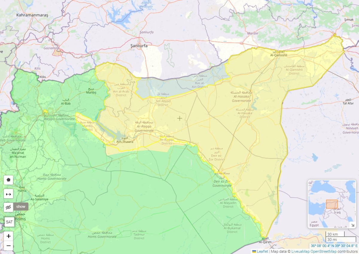 Так теперь выглядит территория, подконтрольная курдам (карта 2), в сравнении с тем, что они контролировали ранее долгие годы (карта 1). Абсолютное большинство бывшей курдской территории перешло под прямое управление новых властей Сирии, включая все ресурсные поля. СДС пока сохраняет контроль над приграничным Кобани и Камышлы, где до сих пор располагается база ВС РФ, а также над Хасакой. Пока что, в качестве компромисса, Ахмед аш-Шараа предлагает курдам сохранить местное управление в этих населенных пунктах с наличием собственных полицейских формирований и без присутствия войск Минобороны Сирии. Однако, переговоры еще идут и не исключено, что в итоге СДС ликвидируют безоговорочно. Без прямой военной и политической поддержки от США весь сирийский курдистан развалился буквально за несколько дней, как это ранее произошло с прошлым сирийским режимом, потерявшим основную помощь от России и Ирана. По злой иронии, нынешние зоны контроля СДС и Сирии напоминают ситуацию контроля курдов и за