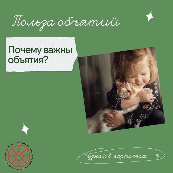 ! 🤗 Давайте в честь этого праздника не просто обнимем близких, а вспомним, какая это мощная и полезная практика заботы о себе и других. Это не просто милая условность. Наука подтверждает: объятия — это настоящая «терапия контактом». Они запускают в нашем теле и мозге целую цепь полезных реакций: 🧠 Вырабатывается окситоцин — «гормон доверия и привязанности», который дарит чувство спокойствия, безопасности и снижает тревогу. ⬇️ Падает уровень кортизола — главного гормона стресса, который истощает наши ресурсы. 😊 Выбрасываются эндорфины и серотонин — натуральные «гормоны счастья», которые улучшают настроение и действуют как легкое обезболивающее. Интересный факт: Согласно некоторым исследованиям, для поддержания эмоционального благополучия и ощущения связи нам нужно не менее 8 объятий в день! Это не строгое правило, а скорее ориентир на то, как важен регулярный, доверительный тактильный контакт. Еще о пользе объятий, подробнее в карточках📲😉 #ЗдоровыйУрал #Уралздоров