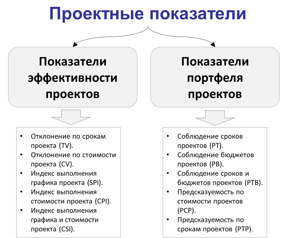✅ Расчетные формулы и более подробное описание этих показателей вы можете легко найти в интернете или в моей библиотеке показателей KPI-Library, где представлены метрики (всего около 600) по четырем разделам (финансы, рынок, процессы, развитие), в том числе и разнообразные проектные показатели.