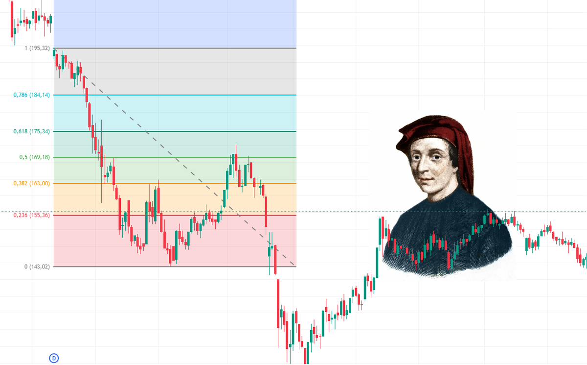 Уверен, что почти каждый трейдер с минимальным стажем слышал про индикаторы Фибоначчи. Почему он так популярен среди опытных трейдеров, и зачем они постоянно хотят "натянуть его на график"? Чем запомнился легендарный математик Леонардо Пизанский, и почему его прозвище теперь увековечено не только в математике, но и в техническом анализе? Биографию изучи самостоятельно, а мы сразу к числам! Заодно расскажу пару стратегий на их основе, которые можно использовать в своей торговле. 0, 1, 1, 2, 3, 5, 8, 13, 21, 34… Как смышлёный человек, ты наверняка заметил закономерность: каждый член числового ряда равен сумме двух предыдущих. В этом основная концепция, но фокусы только начинаются. Главное, на что нужно обратить внимание – это отношение соседних членов друг к другу. Отношение большего к меньшему всегда равно 1.6, а меньшего к большему – 0.6. Значение 1.6 обозначается буквой φ (фи). С продвижением вперёд по ряду это значение стремится к 1.618, что является знаменитым «золотым сечением».