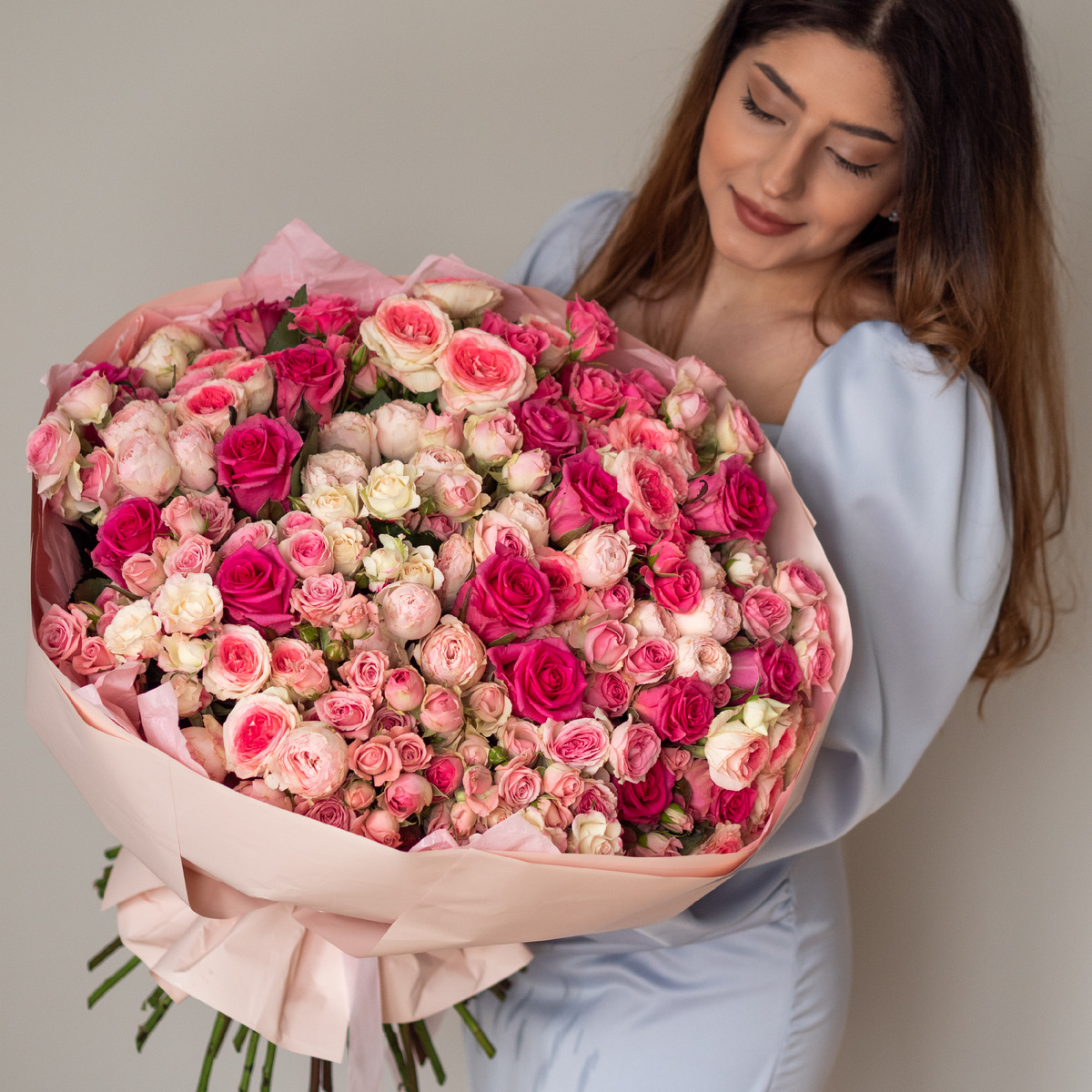 Если нет емкости для «отмачивания» целого букета – обильно опрыскивайте букет водой, стараясь чтобы вода не попадала внутрь бутона.