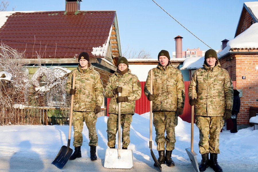 В Гомеле десант войсковой части 5525 помог пожилой горожанке в расчистке снега