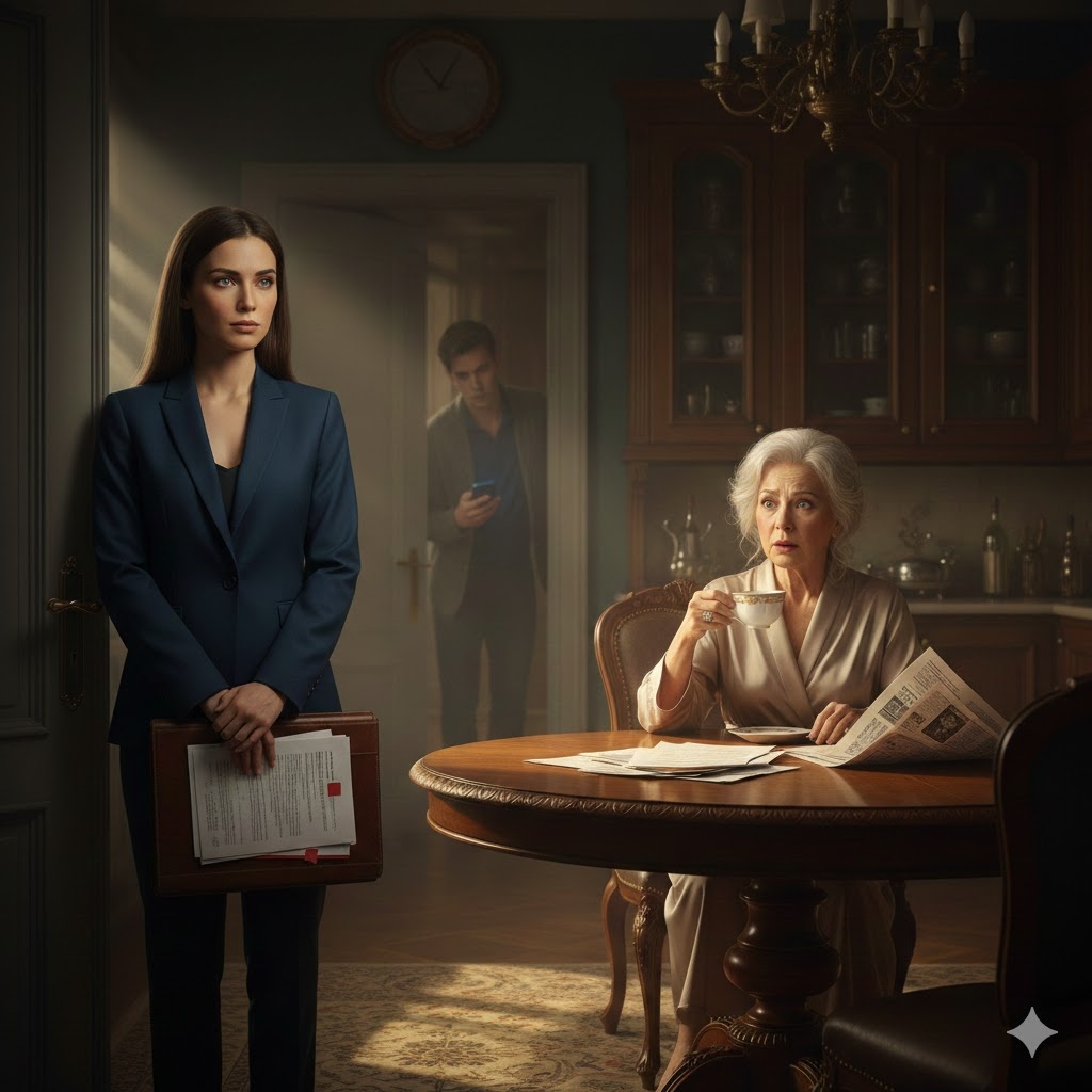 Офис Марины разительно отличался от барочной роскоши дома Анны Павловны. Здесь царил холодный минимализм: стекло, бетон и идеальный порядок. Когда свекровь и сын вошли в переговорную, Марина сидела во главе стола. Рядом с ней сидел пожилой мужчина с колючим взглядом — Виктор Сергеевич, один из самых жестких адвокатов по корпоративным спорам.