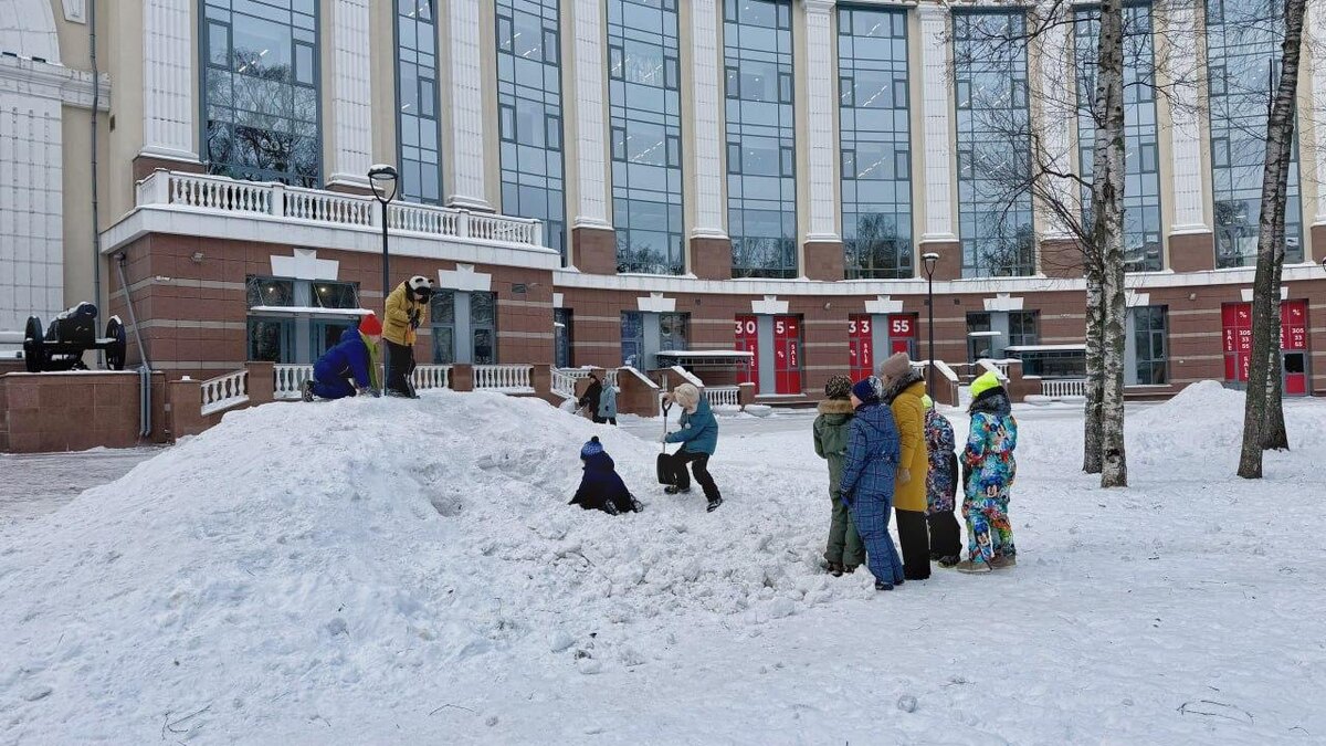 В Петербурге оставили гору снега после уборки специально для детей