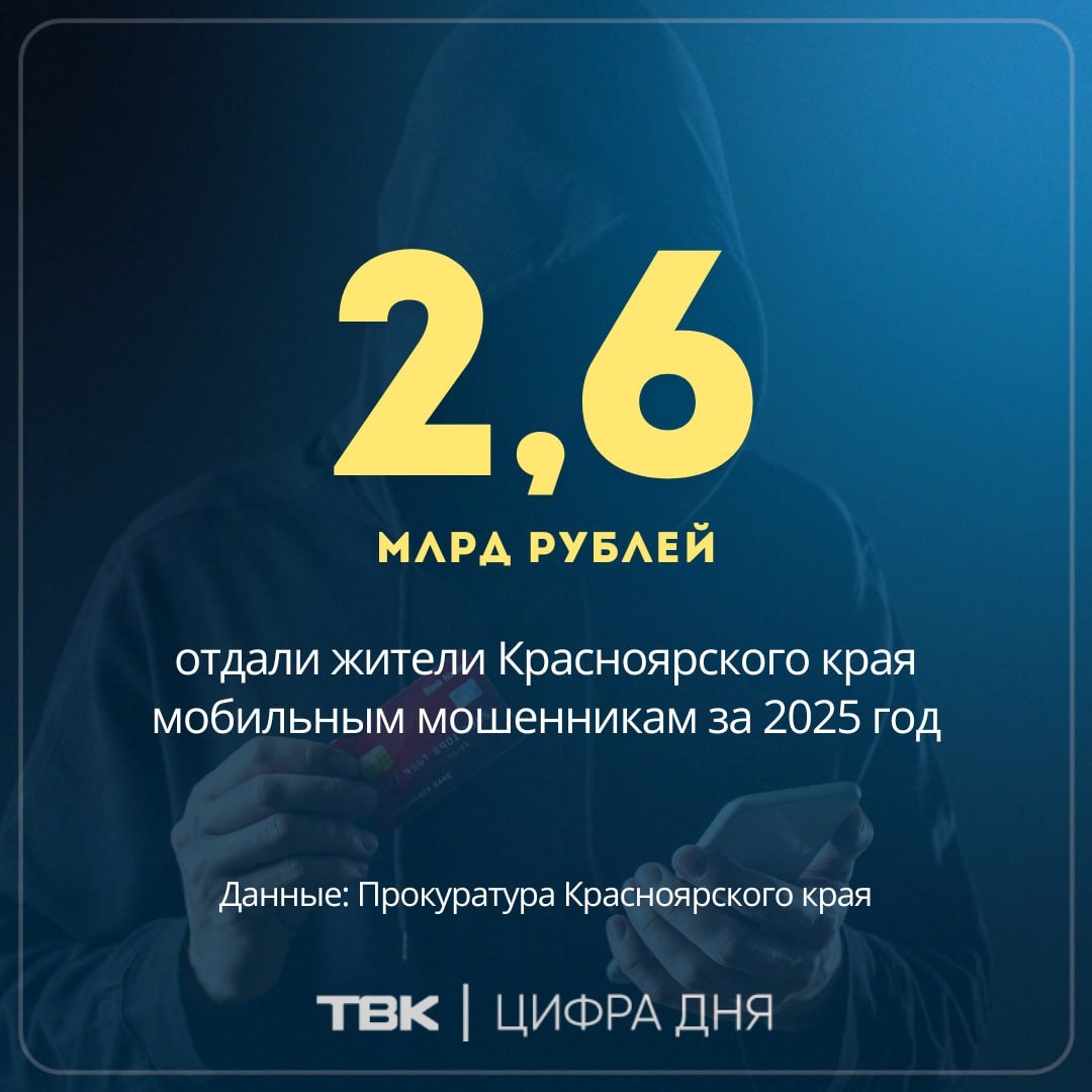 Жители края отдали мобильным мошенникам 2,6 млрд рублей за 2025 год Годовую сводку опубликовали в краевой прокуратуре. Согласно статистике, жертвами интернет-преступников стали почти 9 тысяч жителей региона за год. Раскрываемость киберпреступлений составила 26,8% – правоохранители раскрыли 1 650 дел. ТВК