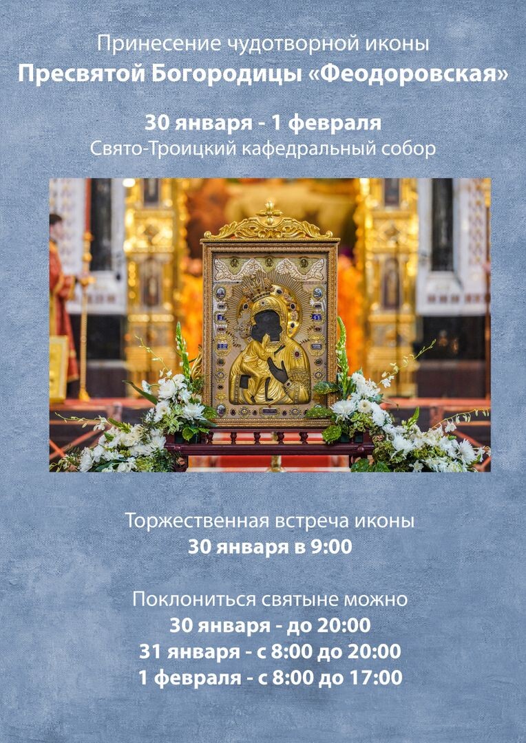 📅 30 января 2026 года чудотворная икона Божией Матери «Феодоровская» прибудет в Псковскую епархию, а затем отправится в Великолукскую. 🎨 Икона, по преданию написанная апостолом Лукой, связана с историей России: она была венчальной иконой Александра Невского и перед ней благословляли на царство первого Романова. ⛪ Встреча иконы в Свято-Троицком кафедральном соборе Пскова 30 января в 9:00 возглавится митрополитом Матфеем, после Литургии будет ежечасное молебное пение. 🕒 Поклониться иконе можно 30-31 января с 9:00 до 20:00 и 1 февраля с 9:00 до 17:00, после чего святыня отправится в Великолукскую епархию. 👉ВЛуки.ру