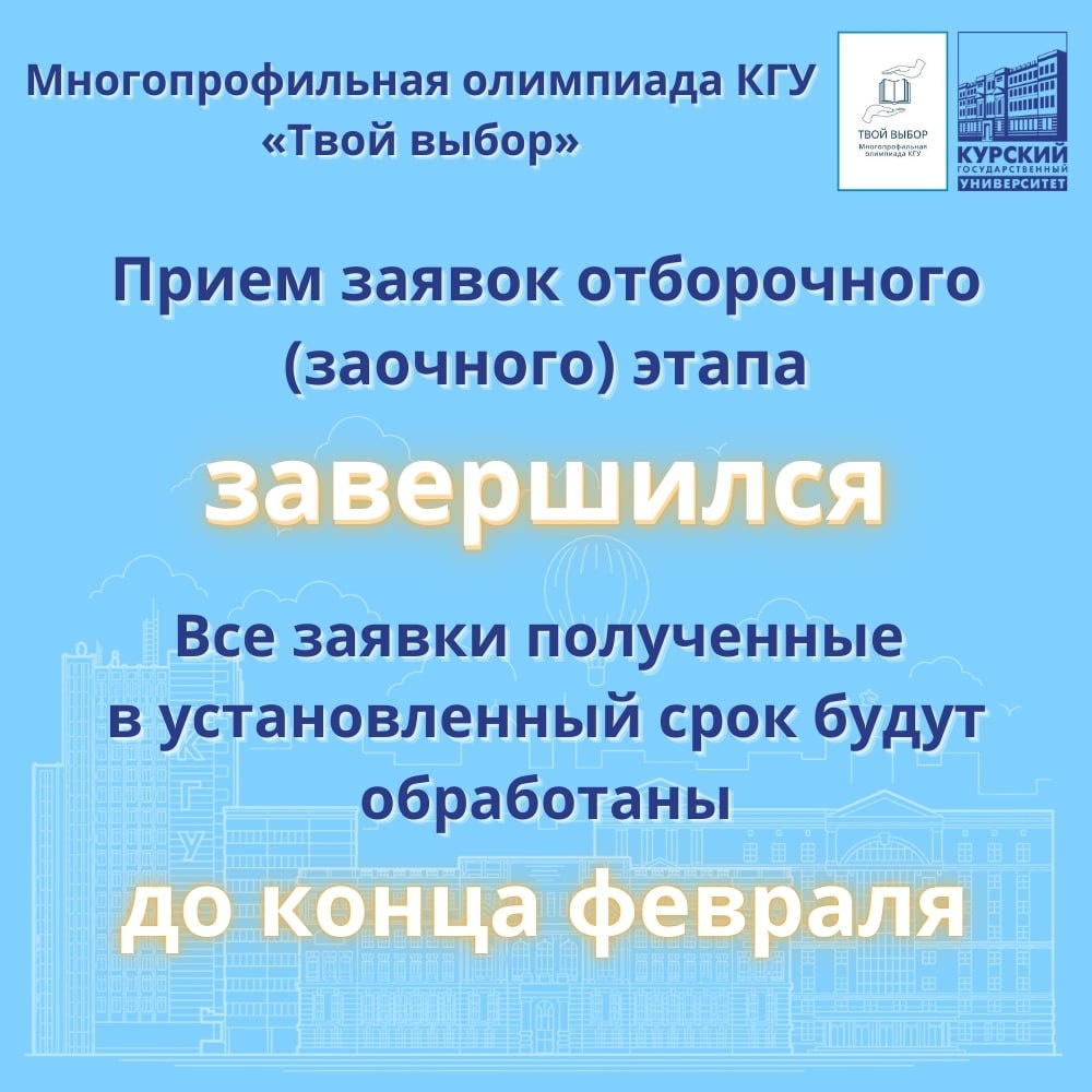 ! 💫 Уважаемые участники. Отборочный (заочный) этап Многопрофильной олимпиады КГУ "Твой выбор" завершился 20 января 2026г. в 23:59 Все заявки полученные в установленный срок будут обработаны до конца февраля 2026г. Ответ поступит на адрес электронной почты, указанный при регистрации, с подробными инструкциями о дальнейших действиях. Остались вопросы? Телефон: +7 (4712) 513-913 Почта: idj.1@yandex.ru Вконтакте 🖇 КГУ в MAX