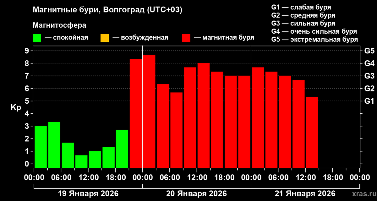 Метеозависимые волгоградцы могли почувствовать воздействие магнитных бурь 20 и 21 января. Сегодня днем фиксировались слабые и средние возмущения уровней G1–G2. Фото: Лаборатория солнечной астрономии ИКИ и ИСЗФ Жители Земли два дня подряд переживают магнитные бури. Они появились из-за прихода к нашей планете плазменного облака, возникшего после мощной вспышки Х1,95 баллов. По прогнозам ученых Лаборатории солнечной астрономии ИКИ и ИСЗФ, ситуация должна стабилизироваться к вечеру. Вероятность возникновения геомагнитных скачков 22 января составляет 31%. Смотрим «Вести. Волгоград»: smotrim.ru/Volgograd Подписывайтесь на наши страницы в соцсетях: Telegram, ВКонтакте, Одноклассники, Дзен, MAX