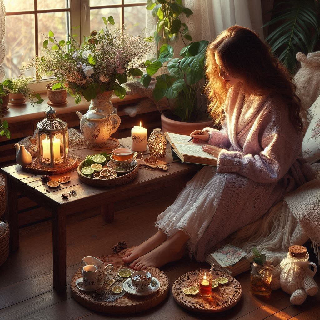 После насыщенного дня я заварила чашку душистого чая с жасмином. Его аромат наполнил комнату уютом, и я взяла в руки свой любимый дневник с мягкой обложкой и открыла чистую страницу. Сегодня был удивительный день, полный маленьких, но очень важных радостей. В своем дневнике благодарностей первым я поблагодарила дворника, который ранним утром аккуратно расчистил дорожки, и шагать по ним было безопасно. Потом я вспомнила случайного прохожего, который улыбнулся мне, когда я случайно задела его сумкой в магазине. Его доброжелательность согрела меня, словно солнечный луч. Следующей строкой я поблагодарила бабушку-соседку. Она принесла мне теплые пирожки с клюквой, пропитанные ее любовью и заботой. Как вкусно! Наконец, я поблагодарила свою орхидею. Сегодня утром я обнаружила, что она зацвела. Ее нежные бело-розовые цветы будто говорили: «Смотри, жизнь прекрасна, стоит только присмотреться». Закрывая дневник, я почувствовала, как тепло разливается внутри. Счастье — в простых вещах 💖 Мы в Тел