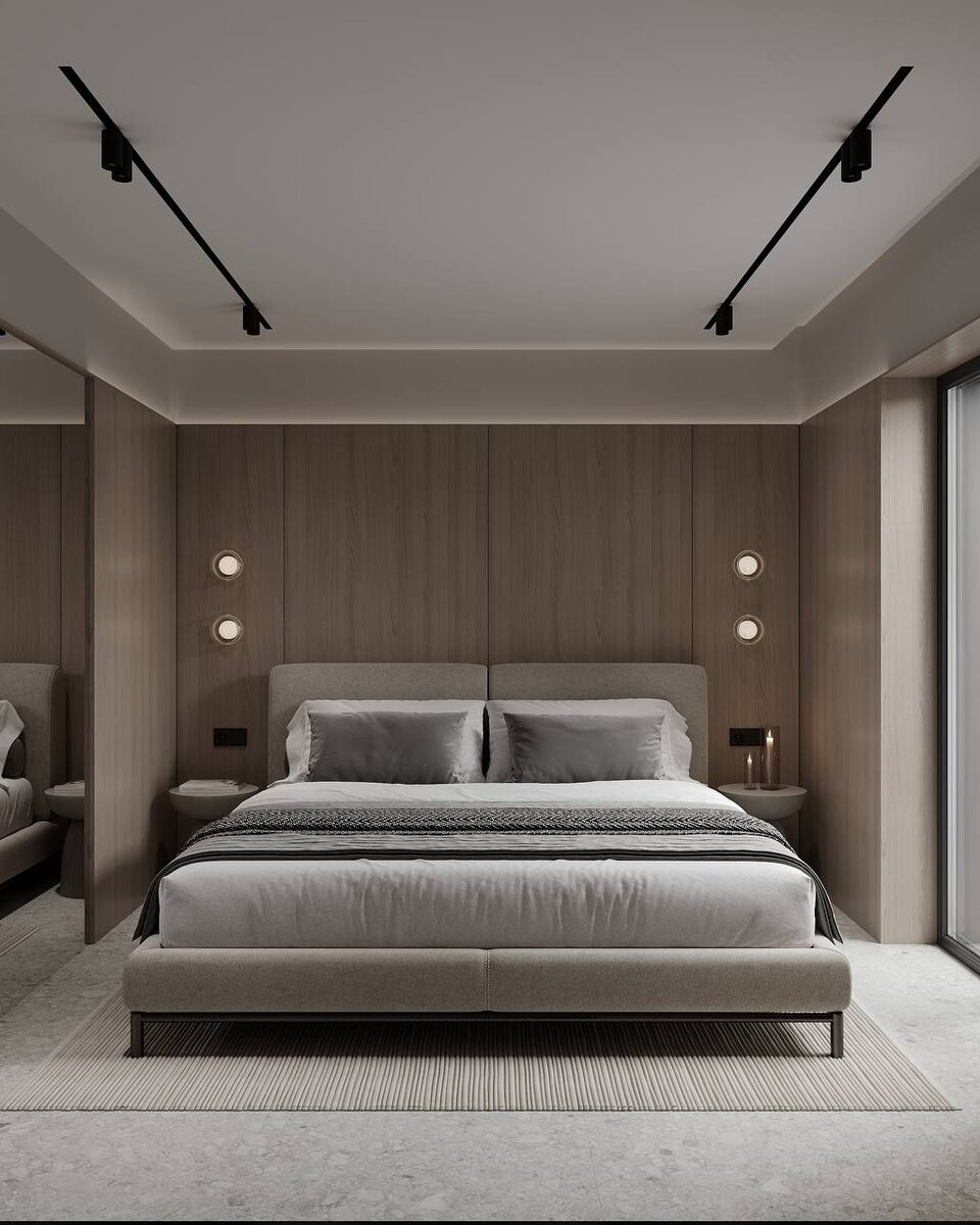 ✨ Для нашего клиента мы прорабатываем дизайн спальни и показываем, как она может выглядеть по-разному за счёт отделки. 🔹 Первый вариант - тёплый, уютный, с акцентом на текстуры и мягкий свет. 🔹 Второй - более современный и строгий: ровные плоскости, лаконичное дерево, минимализм и чистые линии. Такой подход помогает клиенту увидеть будущий дом ещё до начала работ и выбрать вариант, который действительно откликается. Какой стиль ближе вам - первый или второй? 👇