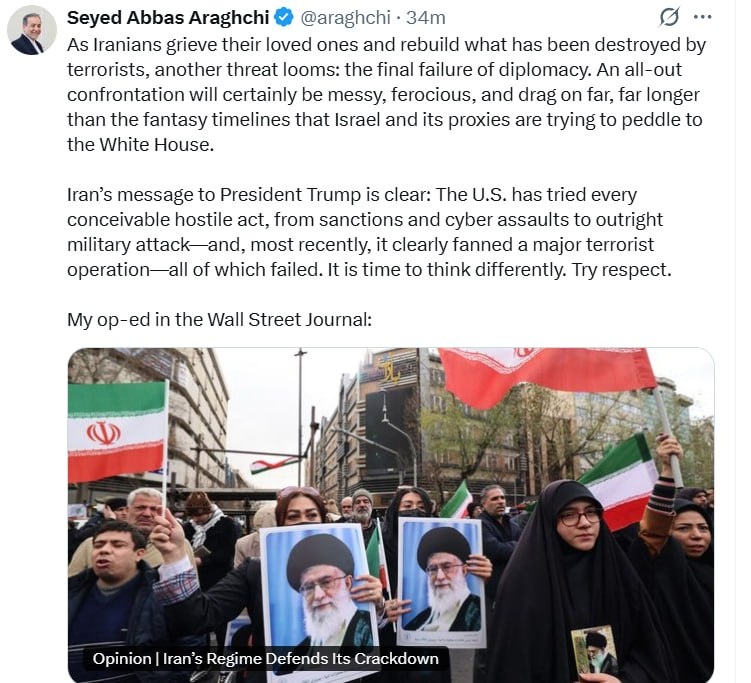 Iranian FM calls on Trump to 'think differently' and 'TRY RESPECT