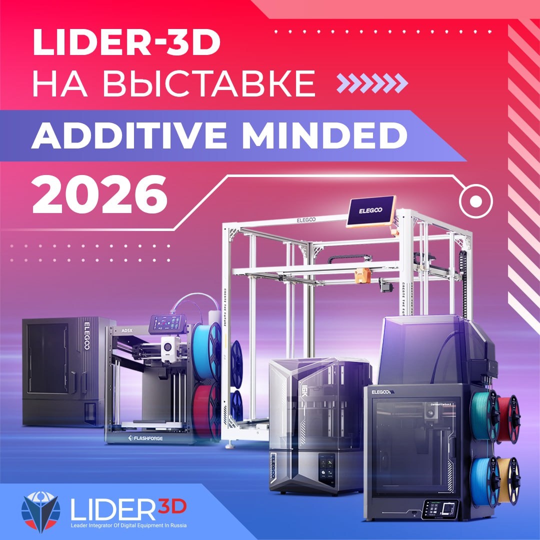 " Команда LIDER-3D отправляется на выставку "Additive Minded 2026"! ADDITIVE MINDED — это специальная выставочная экспозиция и деловая программа в рамках международной выставки пластмасс и каучуков RUPLASTICA. На выставке мы покажем: 🔥Новинка Elegoo Centauri Carbon 2 Combo! 🔷 Elegoo OrangeStorm Giga 🔷 Elegoo Saturn 4 Ultra 16K 🗓Даты проведения: 27-30 января 🗺Локация: Москва, МВЦ "Крокус Экспо" Адрес: г. Красногорск, ул. Международная, д.16, Павильон 2, Зал 5 Номер стенда: 25B02 🔥Подробности здесь: Additive Minded 2026 ❗️Посещение выставочной экспозиции и конференции является БЕСПЛАТНЫМ. Необходима предварительная регистрация. #lider3d_интересное Новости из мира 3D _________________________________ 🔷LIDER-3D теперь в MAX! Подписывайтесь чтобы не потеряться!