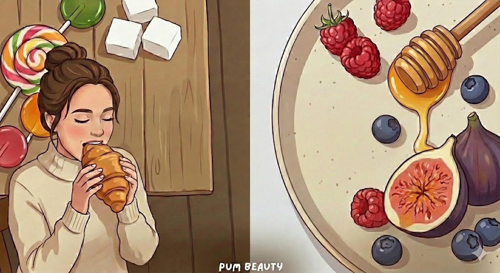 1. Правило «Десерт — это финал, а не начало» Никогда не ешьте сладкое на голодный желудок. Если вы съели шоколадку или круассан вместо обеда, уровень сахара взлетит мгновенно, и процесс «склеивания» коллагена запустится. Если же вы съели тот же десерт после плотного обеда, где была клетчатка (овощи) и белок, скачок глюкозы будет плавным и безопасным для кожи.